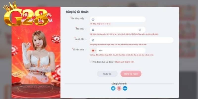 Mẹo để quá trình đăng ký G28 diễn ra thuận lợi cho cược thủ